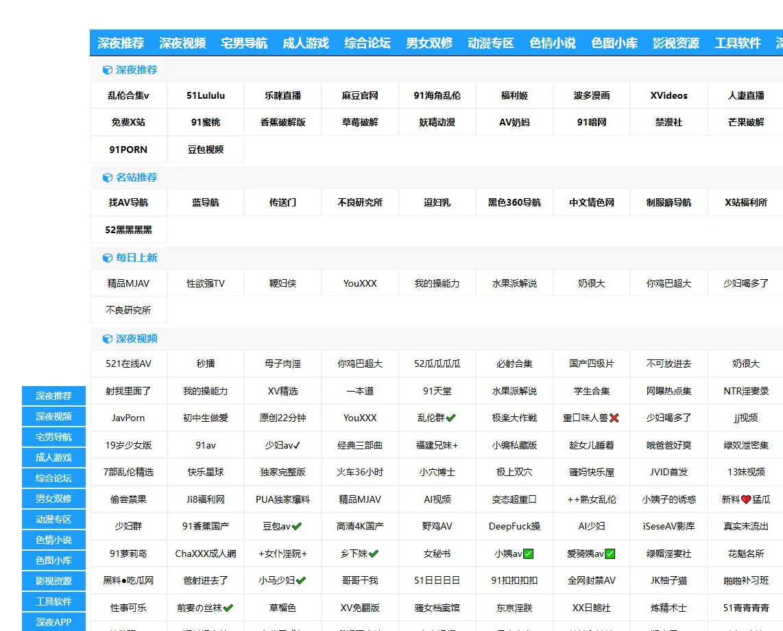 这是一个 综合性成人影视资源站,集国产、亚洲、欧美、素人、主播自拍、无码中字等热门板块于一体。网站每天持续更新,保持影片库新鲜感,既有主流大厂作品,也囊括网红自拍与业余视频,适合不同喜好的观众。其核心价值在于更新速度快、资源覆盖全、分类清晰,因此成为用户追捧的高频使用站点之一。